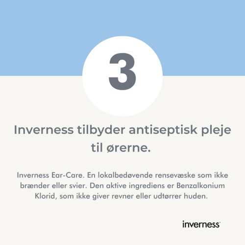 Vask hænder grundigt, før du rører ved hullerne. Rens dem to gange dagligt med saltvand, isopropylalkohol, klorhexidin eller vores Inverness Ear Care Solution, der er skånsom mod huden. - Forebyggelse af irritation: