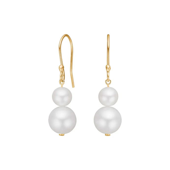 Disse elegante 8 kt guld ørehængere med ferskvandsperler.