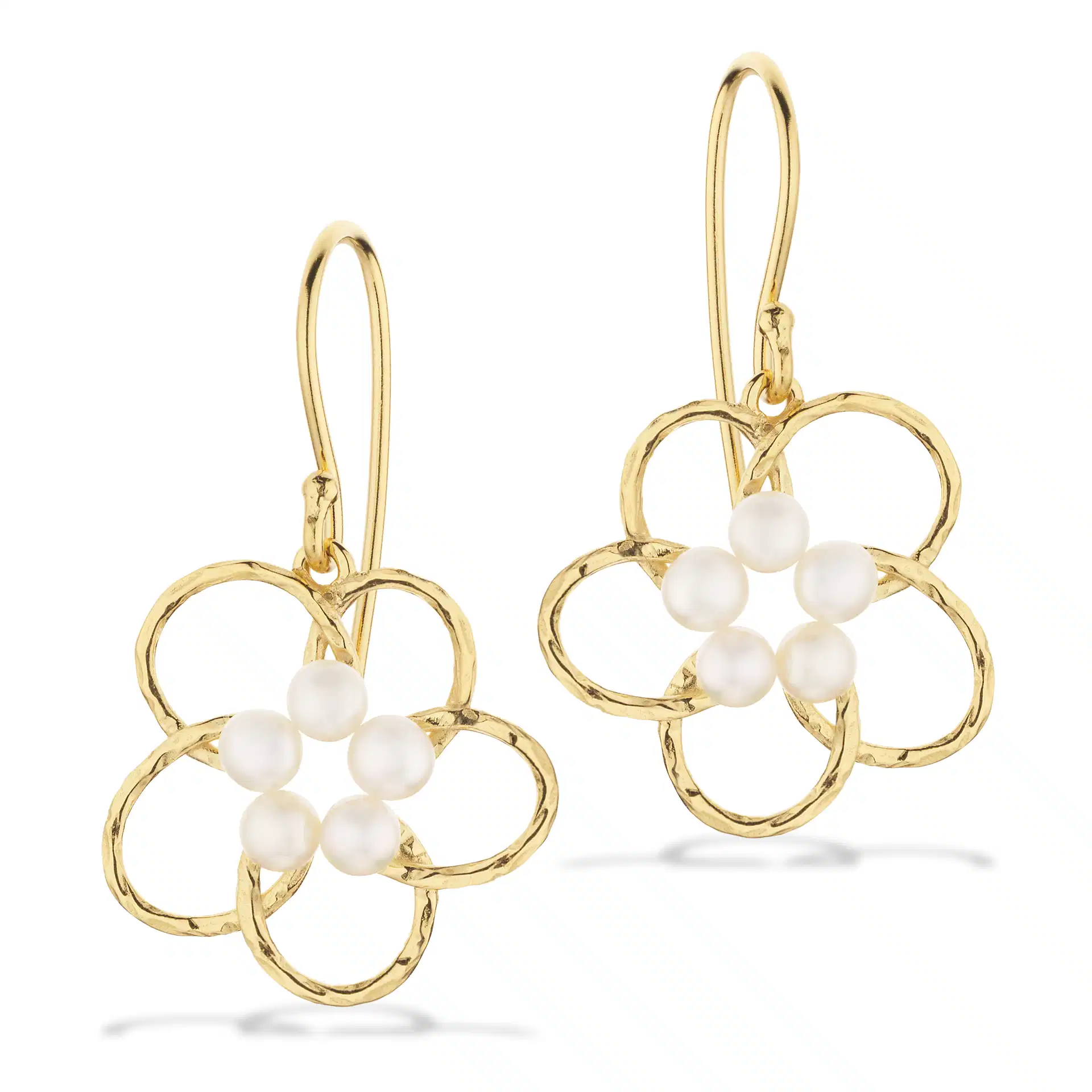Oplev de elegante forgyldte ørebøjler med blomsterdesign og ferskvandsperler.