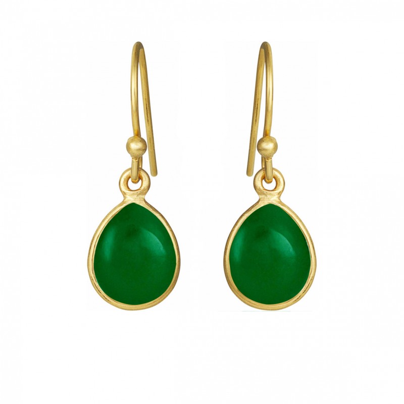 Øreringe i forgyldt sølv med dråber med grøn agat. Agaterne måler 8x10 mm.