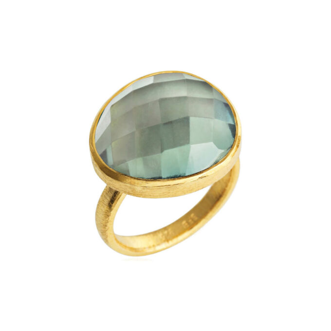 Super flot sølvforgyldt ring, med grøn quartz.