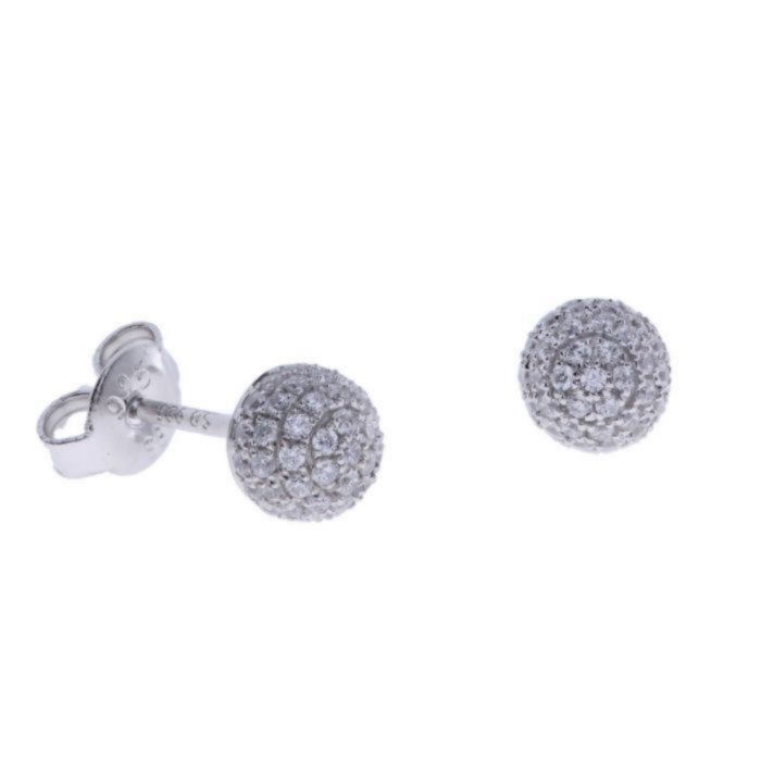 Kugle ørestikker i sølv med funklende syntetiske cubiske zirkonia. Ørestikkerne er ca. 5,5-6 mm. brede