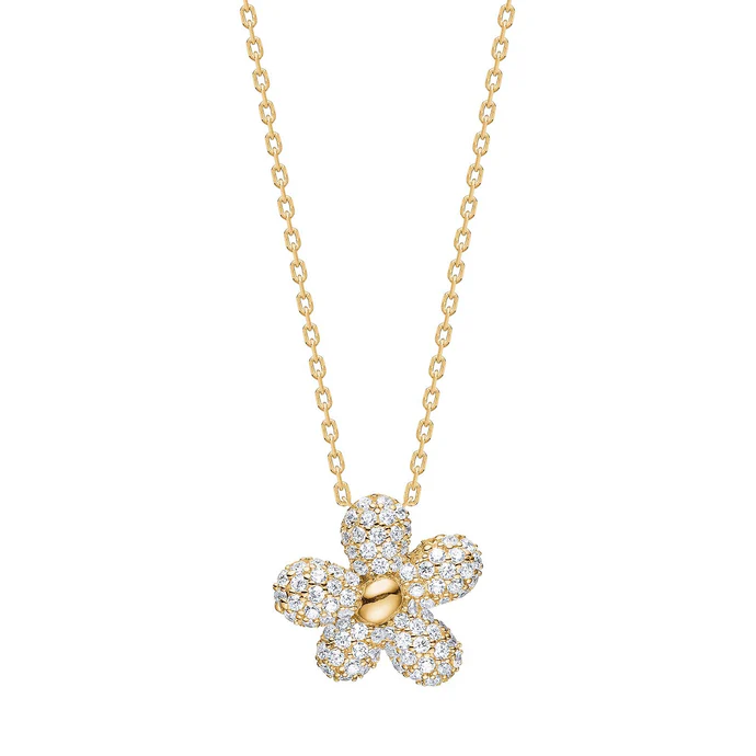 Elegante halskæde i forgyldt 18 karat sølv, blomsterform, med en blank overfladebehandling. Perfekt til enhver anledning, der udstråler tidløs skønhed og raffinement.