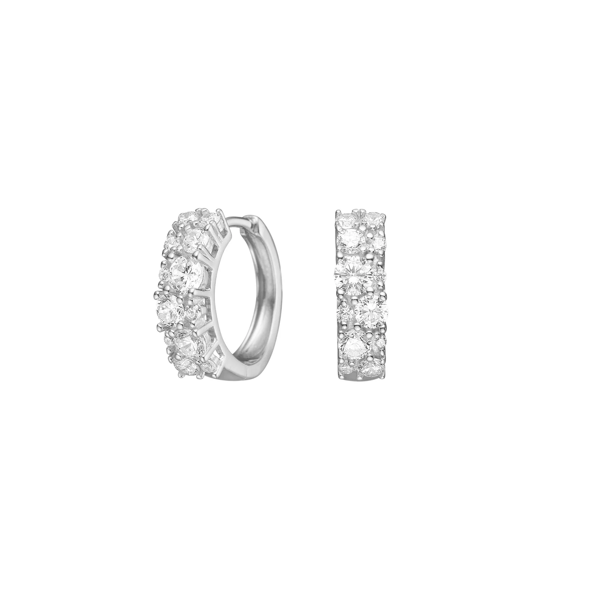 Disse elegante sølvfarvede creoler kombinerer et klassisk design med et moderne og eksklusivt udtryk. Øreringene er udsmykket med funklende klare sten i forskellige størrelser, som skaber en levende og luksuriøs overflade med masser af glans og spil.