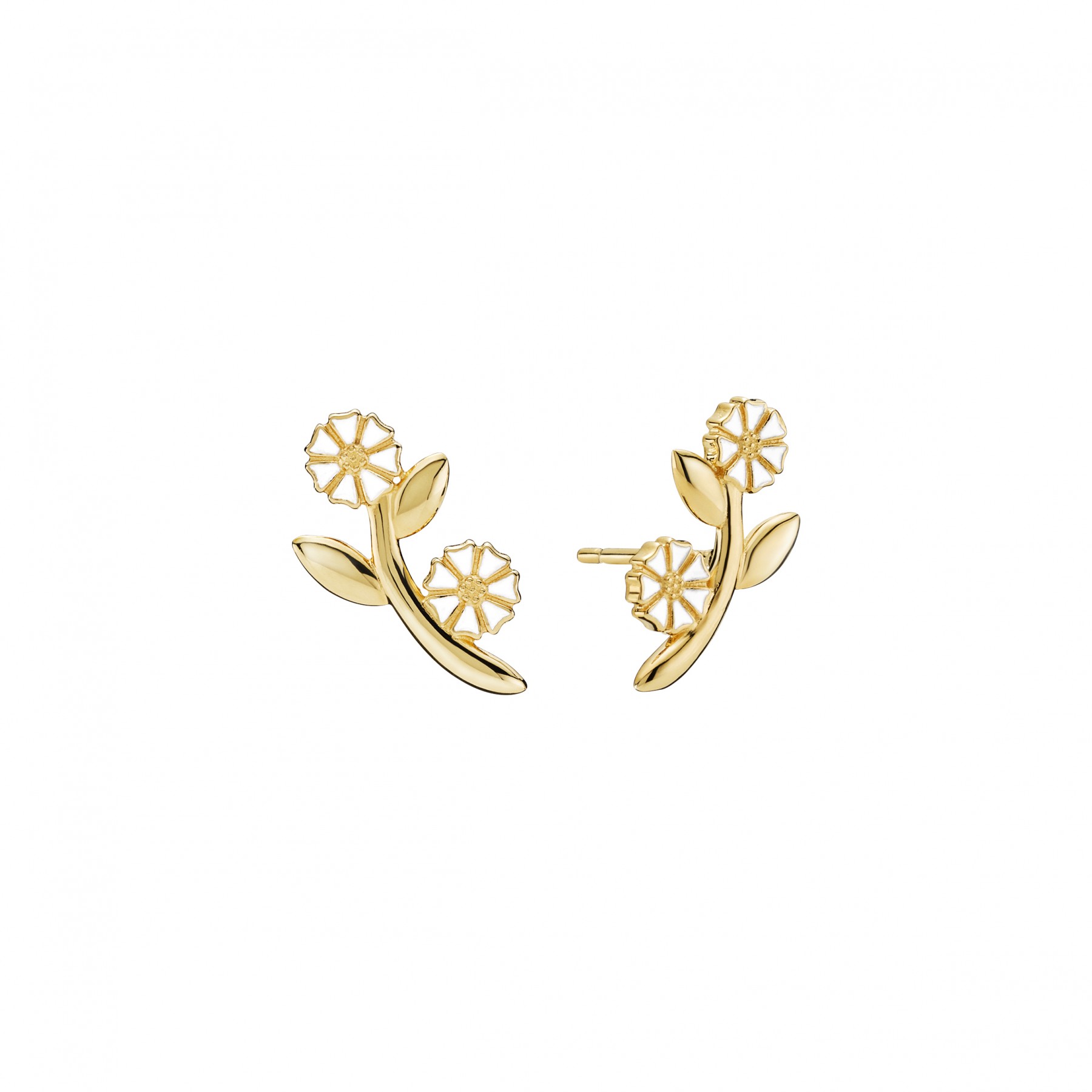 Forgyldte sølvørestikkere med margueritter og blade.