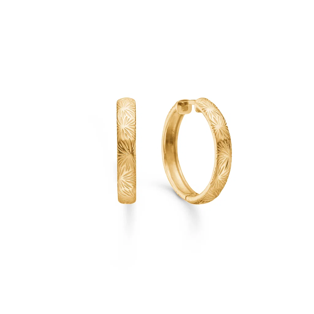 Rime øreringe i ægte 925 sterlingsølv med 18 karat forgyldning har en fin, stjernelignende struktur inspireret af iskrystaller.