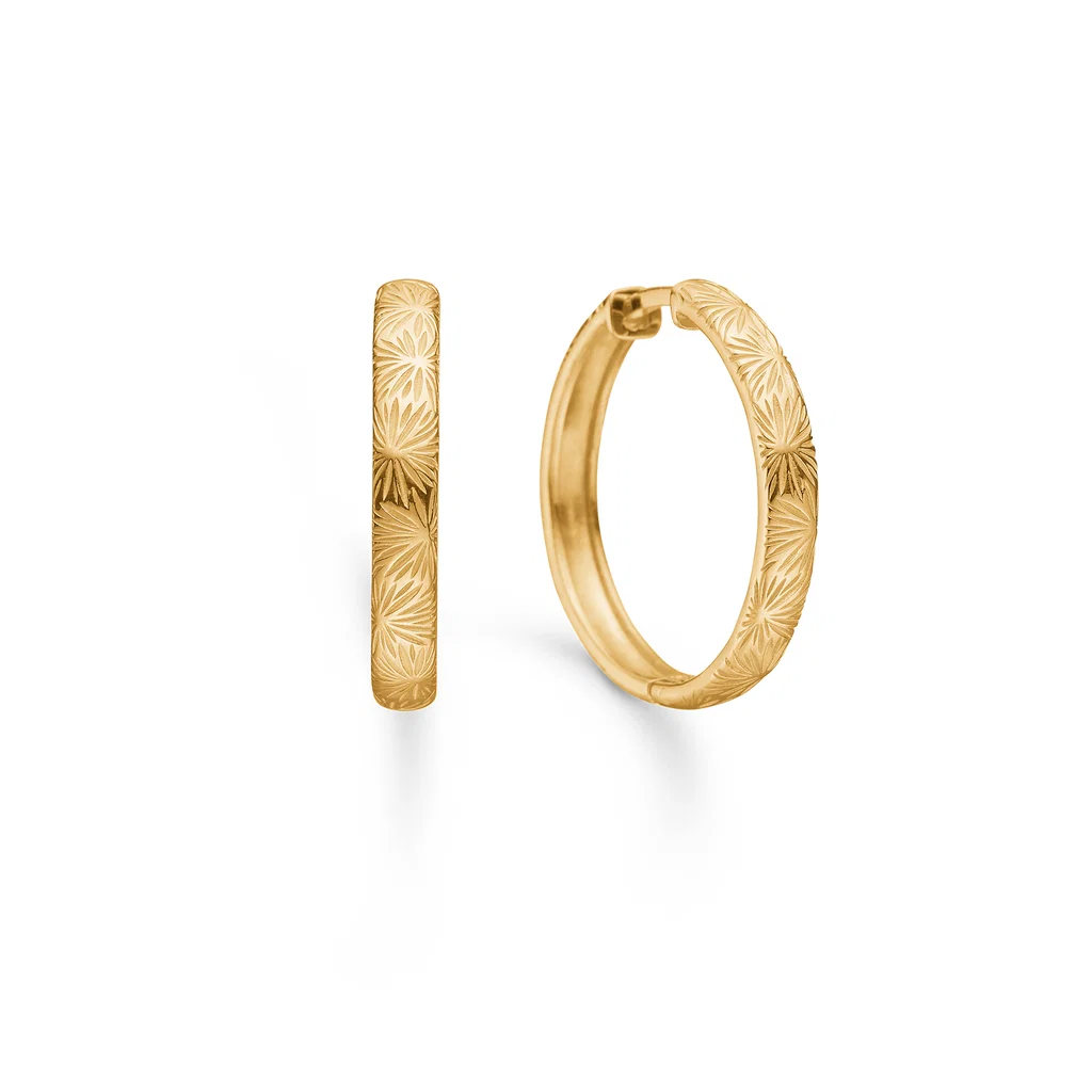 Elegante hoops med et varmt, glimtende og mere markant udtryk.