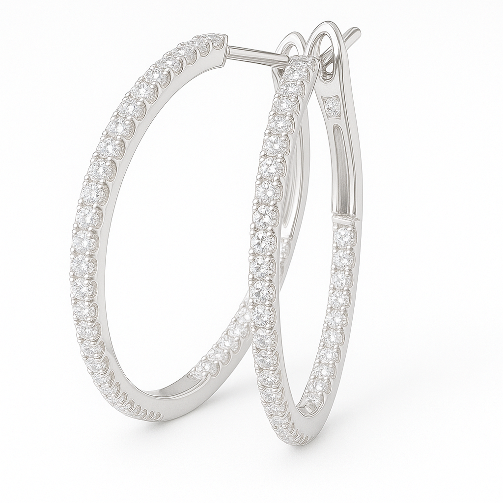 Hvidguldet giver et køligt, sofistikeret udtryk, som fremhæver diamantens klare skær, og de slanke, lette bøjler gør øreringene både komfortable og utroligt elegante at bære. Et tidløst valg til kvinden, der ønsker et eksklusivt smykke, som passer perfekt til både daglig brug og særlige anledninger.