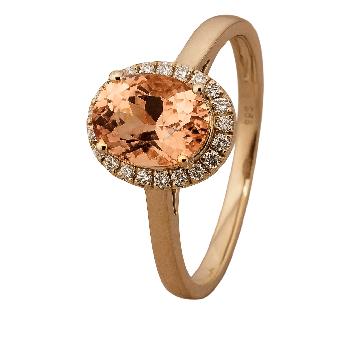 14 kt. guld ring med peach morganit & naturlige diamanter (0,12 ct. W/SI)