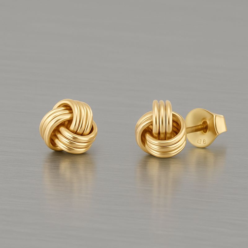 Disse elegante knudeformede ørestikker i 8 karat guld symboliserer samhørighed, styrke og tidløs skønhed. Det snoede design danner en blød, harmonisk knude, hvor de fine guldringe flettes sammen i et klassisk og stilrent udtryk 🤍🔗