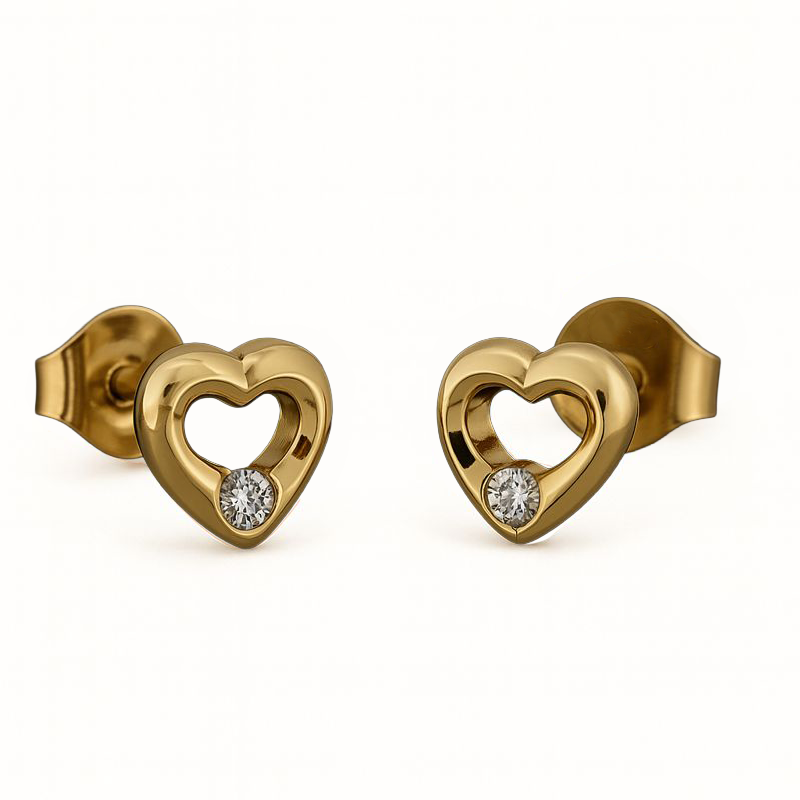 Disse fine hjerteformede ørestikker i 8 karat guld er et klassisk smykke med et romantisk twist. Hjertets bløde, afrundede form er let hul i midten og skaber et elegant, let udtryk, mens den lille funklende syntetiske zirkonia tilfører et diskret strejf af glans.