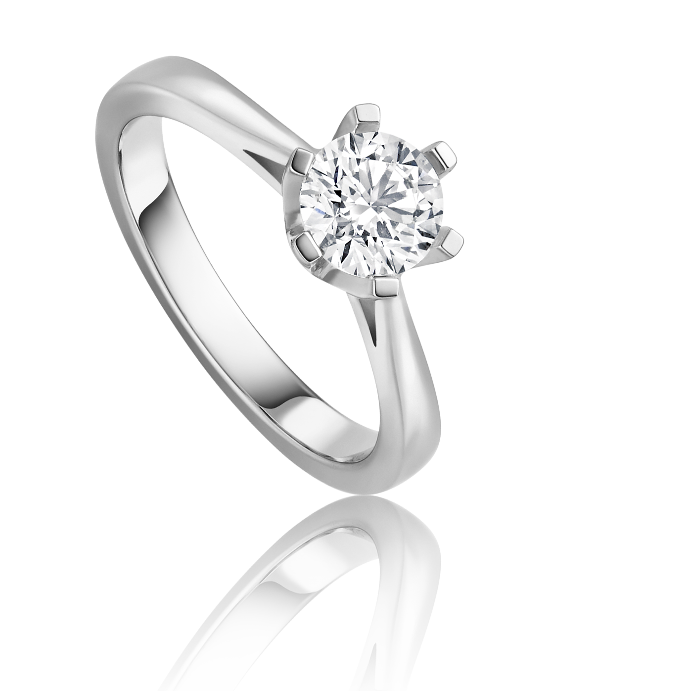 Denne elegante solitairering er indbegrebet af klassisk luksus og moderne finesse. Ringen er udført i 14 karat hvidguld med en blød, afrundet ringskinne, der føles behagelig og eksklusiv på fingeren.