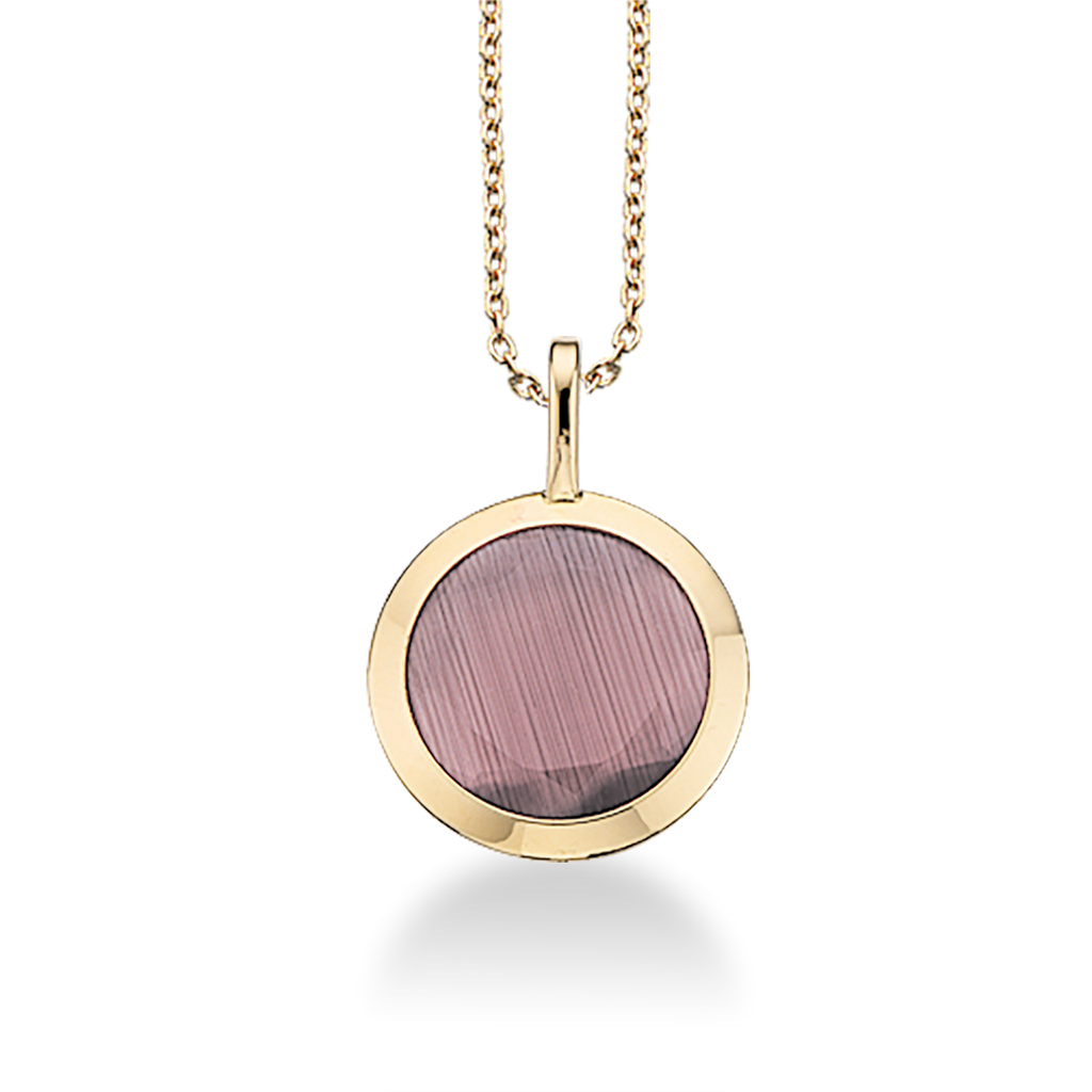 Vedhæng i 8kt guld med stor rosaquarts. Vedhænget er monteret på forgyldt kæde.
