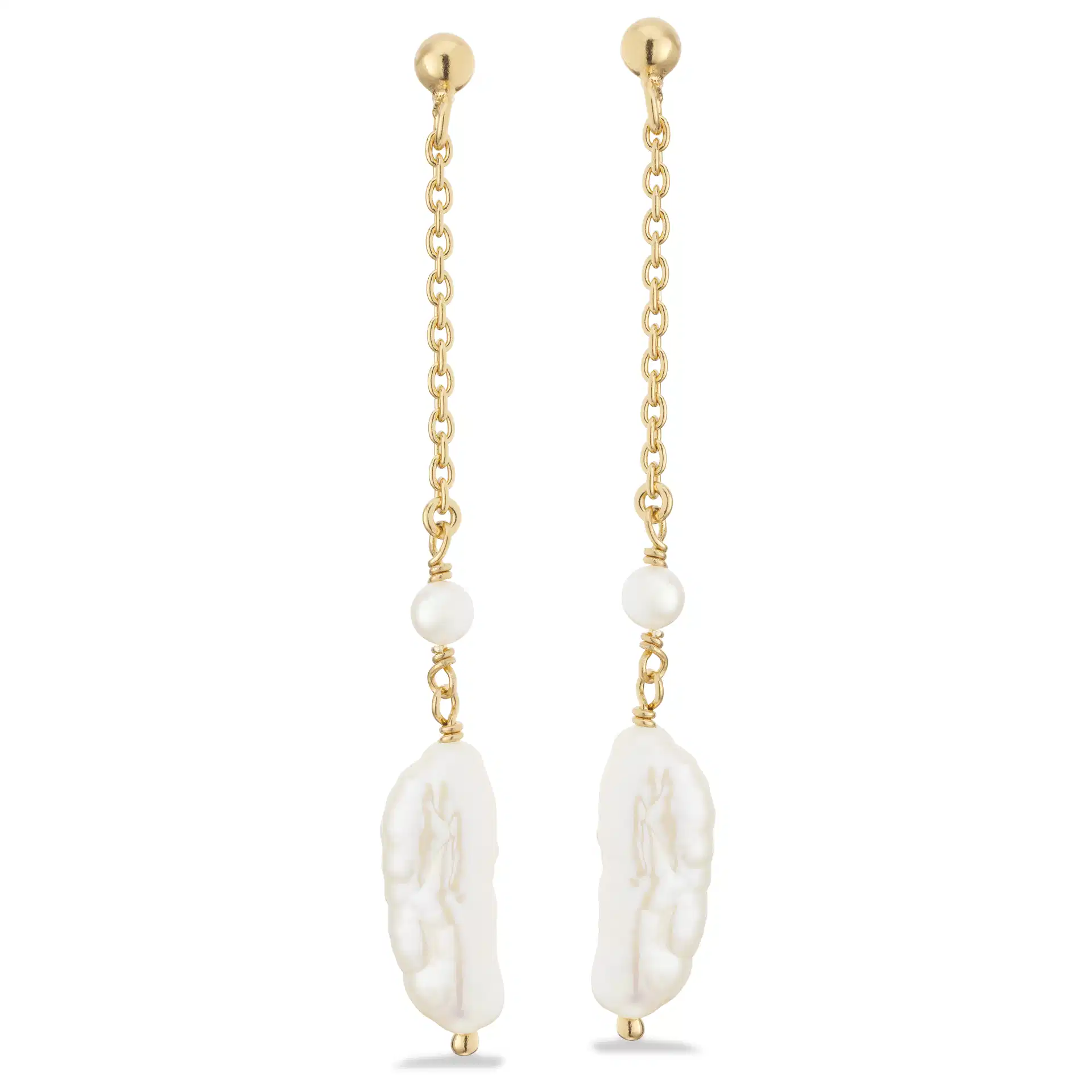 Oplev elegance med Scrouples Forgyldte Ørehængere, der smukt prydes med luksuriøse ferskvandperler. Opdater dit look med tidløs skønhed og forkæl dig selv med disse must-have smykker!