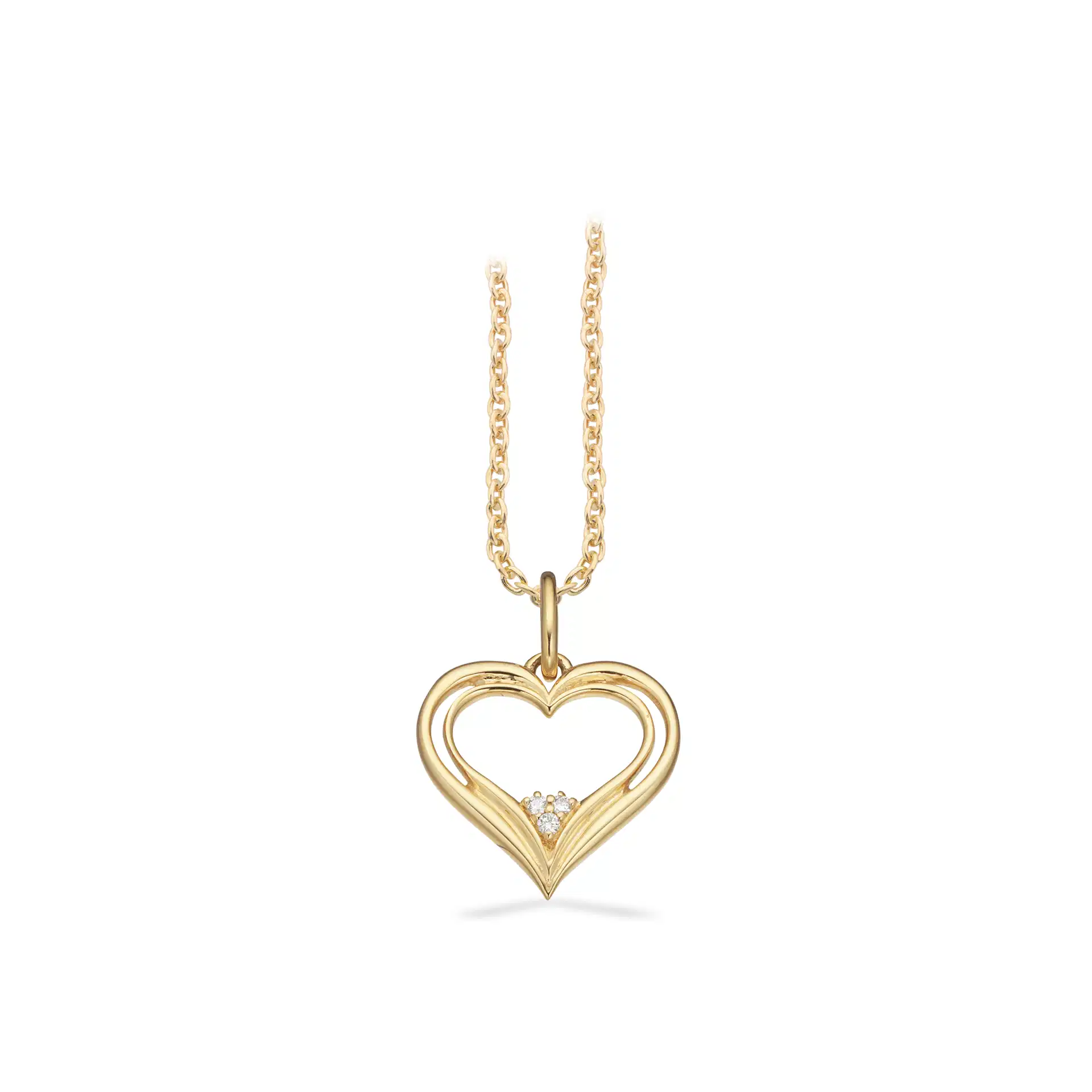 Forkæl dig selv eller en du holder af med dette elegante 8 kt rødguldshjerte fra Scrouples, prydet med 0,015 ct diamanter, hængende på en forgyldt sølvkæde.
