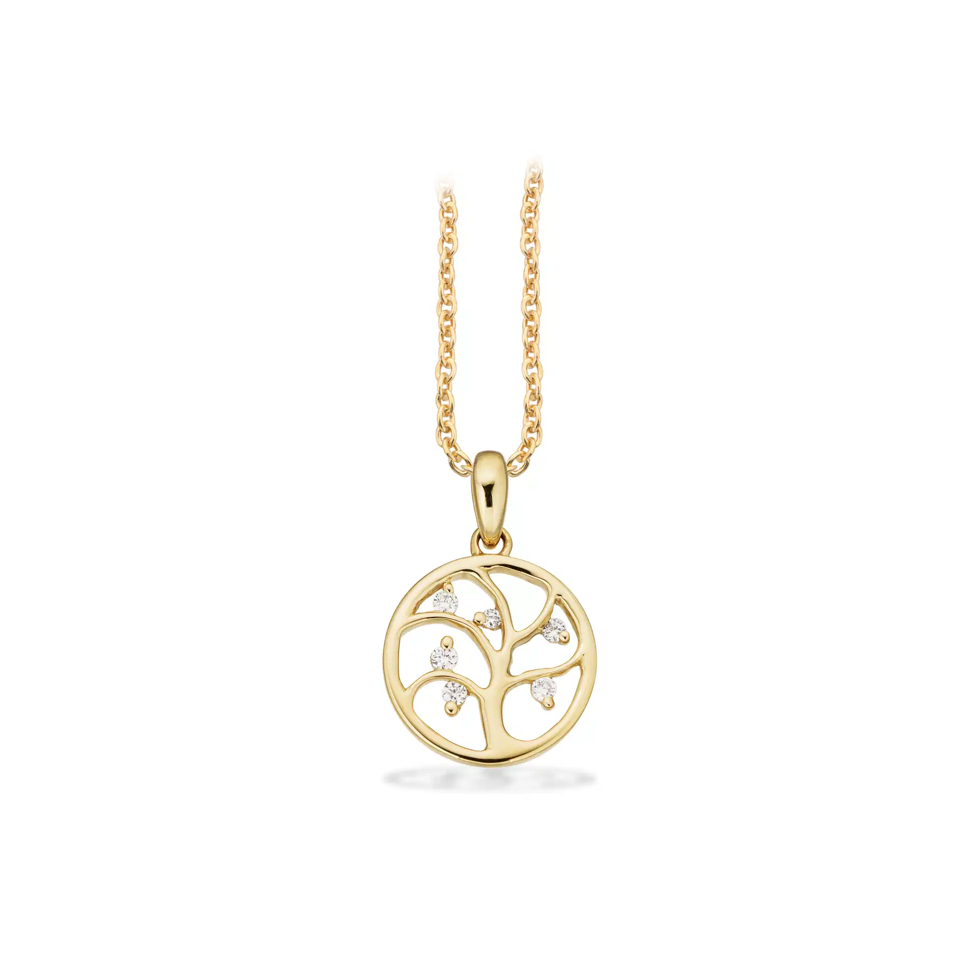 Scrouples 14 Kt Guld Livets Træ m/Brillant/ forgyldt Sølv kæde 214745