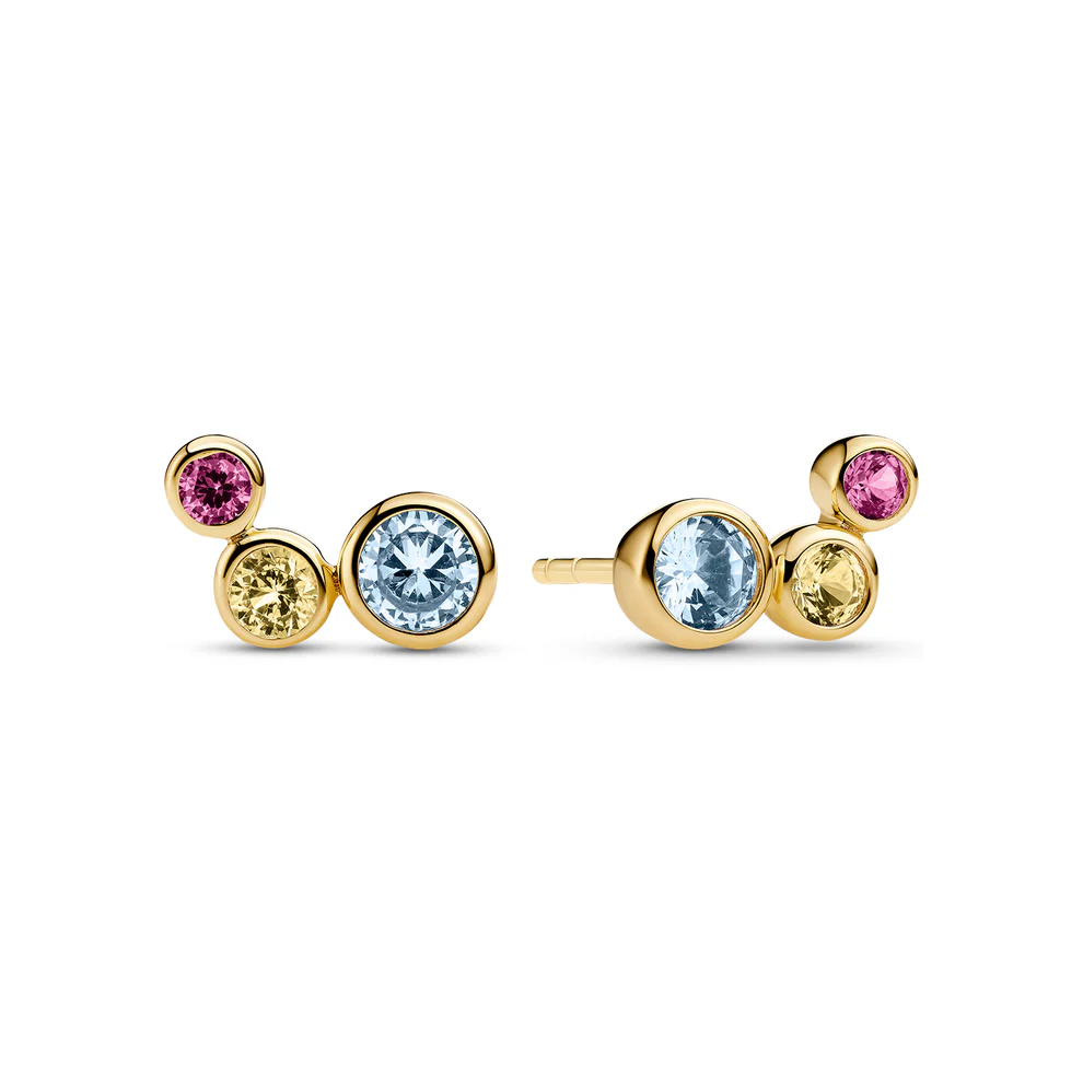 Oplev elegance med vores Øreringe, skabt af 18 karat forgyldt 925 sterlingsølv. Med en glat, poleret overflade og håndsatte, facetslebne flerfarvede zirkoner, tilføjer de et strejf af farve til ethvert outfit.