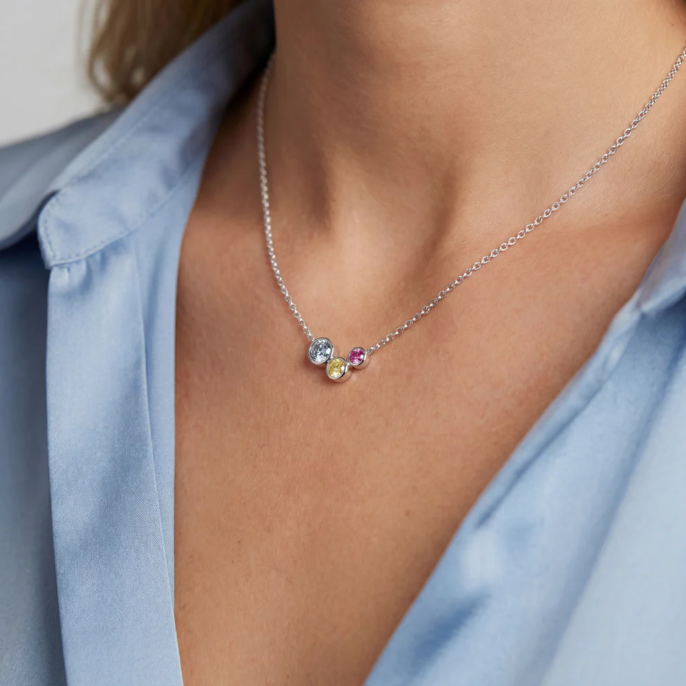 Præsentér din stil med dette elegante halskæde, skabt af rhodineret 925 sterlingsølv. Den polerede overflade fremhæver de håndsatte, facetslebne flerfarvede zirkonia, der stråler af farvespil og dybde.