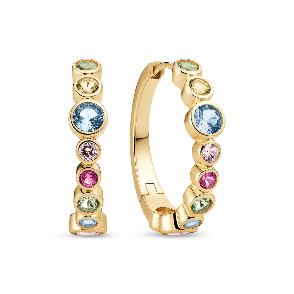 Disse øreringe, fremstillet af 18 karat forgyldt 925 sterlingsølv, prydes af håndsatte facetslebne zirkoner.