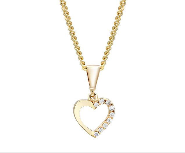 Hjerte i 8 kt. guld med zirkoner monteret på forgyldt kæde.